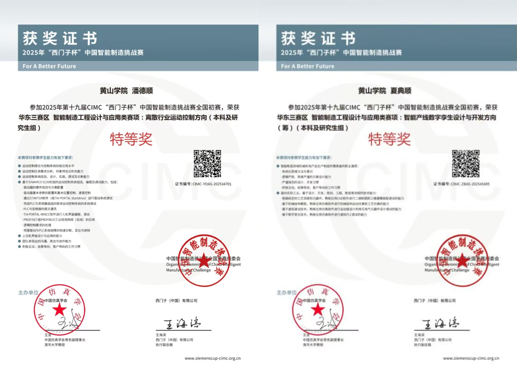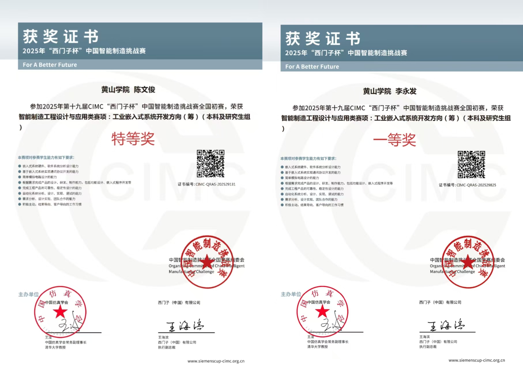 2025年7月,由教育部高等学校自动化类专业教学指导委员会、西门子(中国)有限公司和中国仿真学会联合主办的第十九届”西门子杯“中国智能制造挑战赛初赛圆满落幕。我校77779193永利官网共组织并选派39支队伍,与安徽大学、安徽工业大学等高校同台竞技。经过激烈角逐,我校代表队荣获赛区特等奖3项、一等奖4项、二等奖13项、三等奖6项,创我校在该项赛事赛区历史上的最佳成绩。