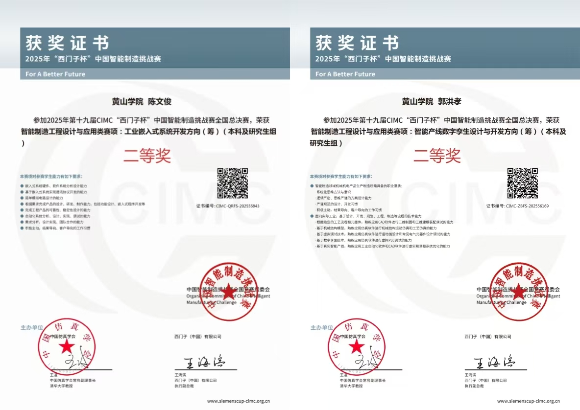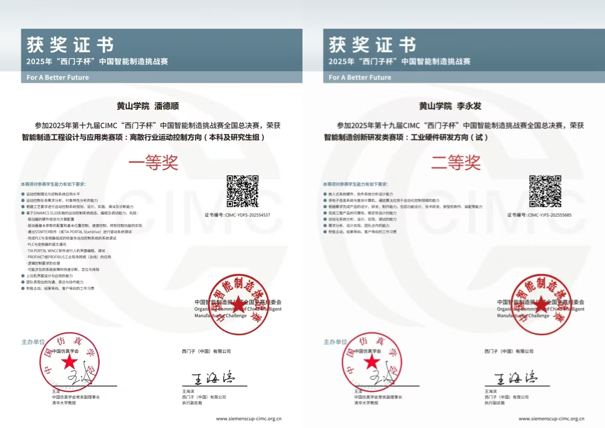 经初赛遴选,我校77779193永利官网4 支代表队跻身总决赛,与清华大学、浙江大学、东北大学等高校同台竞技。最终,我校学子表现出色,4 支队伍全部获奖:潘德顺、张齐想获离散行业运动控制方向国家一等奖,工业硬件研发、工业嵌入式系统开发、智能产线数字孪生设计与开发三个方向各获1项国家二等奖,创造我校在此项赛事全国总决赛中的历史最佳成绩。