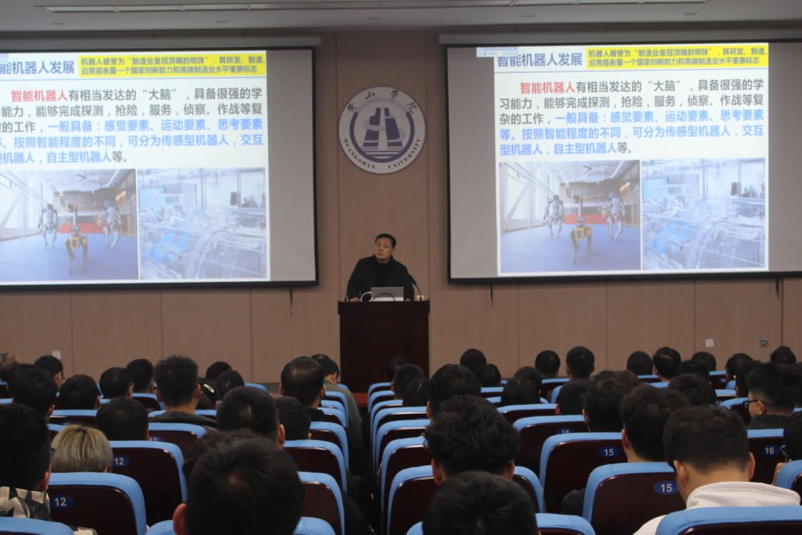 报告讲述有关智能机器人的发展、功能全名解释、具备的要素以及智能机器人的前景和多方面的应用等,同时訾斌教授分享了自己的科研历程和从教经验。报告会后,訾斌教授与参会的师生进行了交流。訾斌教授的此次讲座给师生们留下了深刻的印象,引发了师生们对智能机器人技术热烈讨论,激起了师生们的强烈兴趣。