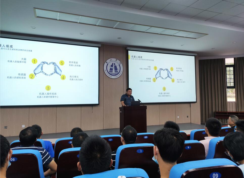 报告从机器人的发展历程、机器人的组成和分类、机器人的关键技术、机器人的控制算法等四方面进行了阐述。报告阐述了机器人的发展历程和组成分类(结合典型机器人案例论述),结合做过的课题论述了机器人的一系列关键前沿技术,并且深入的阐述了其控制算法等控制原理,使师生们进一步了解了机器人技术的内涵,最后钱庆文副教授总结并展望了机器人的未来发展趋势。报告内容体系完整,结合专业实际,深入浅出,内容丰富。