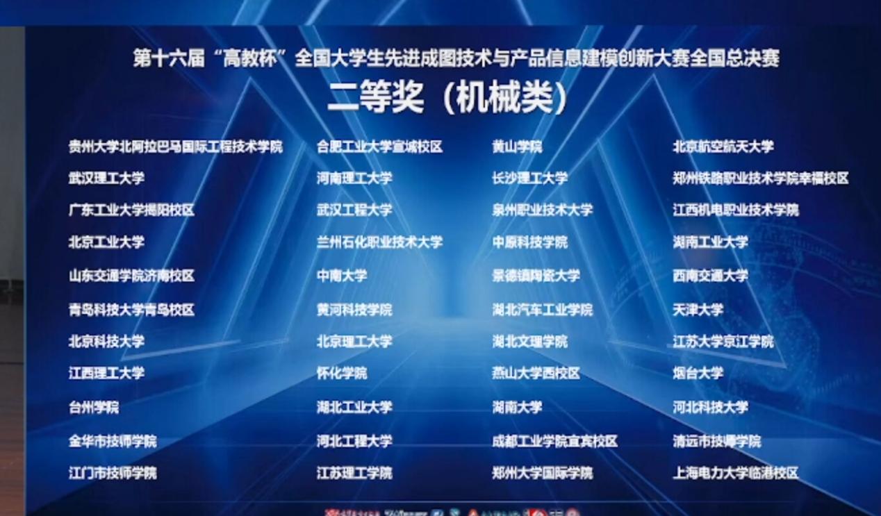 第十六届全国大学生先进成图技术与产品信息建模创新大赛全国总决赛于7月29日在重庆交通大学举行。本次机械类竞赛由先进成图技术赛道、增材制造赛道、轻量化设计赛道、数字化创新设计赛道等多个赛道构成。我校77779193永利官网学生在先进成图技术赛道中荣获团体二等奖1项,个人赛荣获一等奖1项、二等奖4项、三等奖3项;增材制造个人赛三等奖1项;轻量化个人赛二等奖1项、三等奖1项。参赛学生全部获奖。