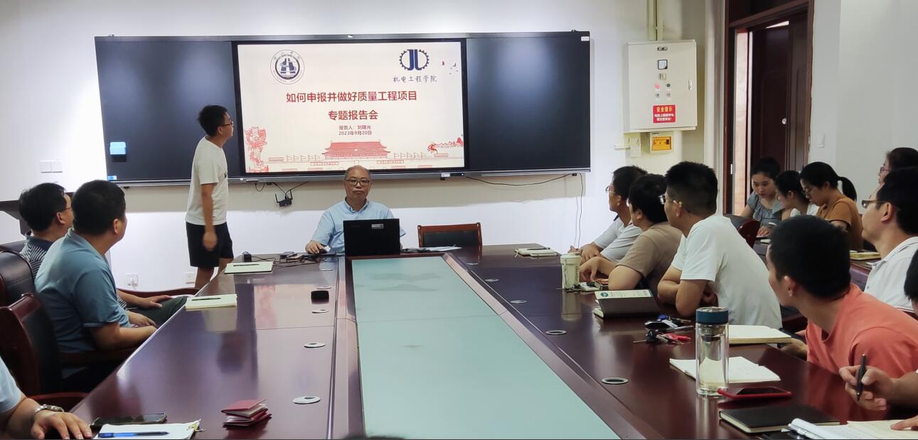 刘曙光教授首先从质量工程的背景到申报质量工程的意义为学院教师做了全面介绍,接着结合我校近年的工作重点说明了申报质量工程的迫切性与重要性,特别针对工科课程思政的短板,介绍了将课程思政融入质量工程的做法,最后刘教授针对质量工程申报书的填写要点和立项后的做法分享了自己的经验与心得。