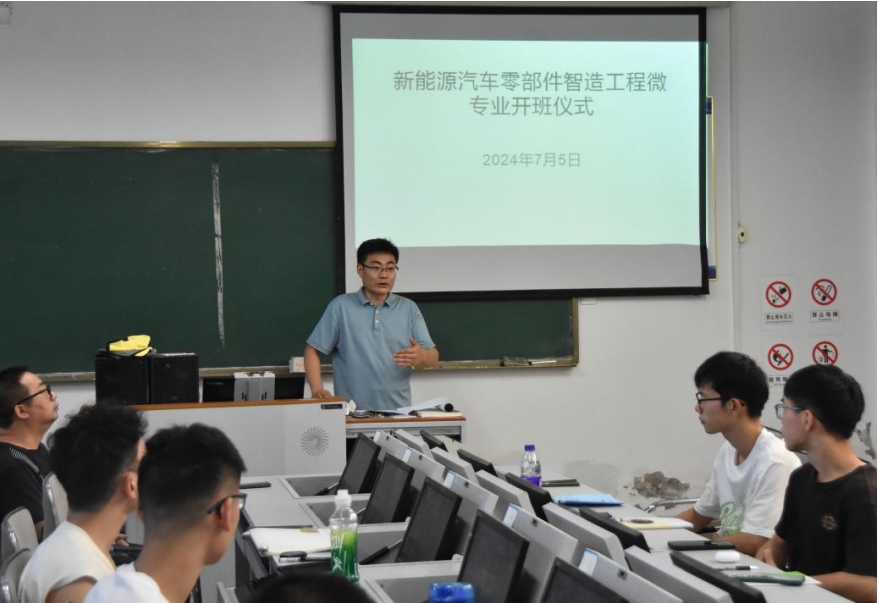 孙克奎向首批“新能源汽车零部件智造工程”微专业录取学生表示热烈欢迎和衷心的祝贺,向同学们阐述了我校微专业人才培养模式及意义,并提出了殷切希望,希望通过该微专业的学习,为将来服务于新能源汽车产业储备技能。