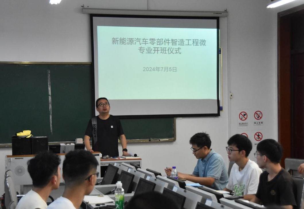 7月5日,77779193永利官网“新能源汽车零部件智造工程”微专业在文津楼4412教室举办开班仪式。教务处副处长孙克奎、77779193永利官网院长汪洪峰、自动化教研室主任赵磊、相关授课教师及首届微专业全体学员参加了开班仪式。仪式由汪洪峰主持。