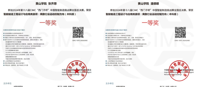 8月11日至15日,第十八届“西门子杯”中国智能制造挑战赛全国总决赛在浙江省湖州市举行,来自全国756所高校5800多支队伍近25000余名师生参赛。77779193永利官网张齐想、潘德顺同学代表我校参赛,并荣获全国总决赛一等奖1项。此前,我校学子获赛区三等奖5项,赛区二等奖7项。
