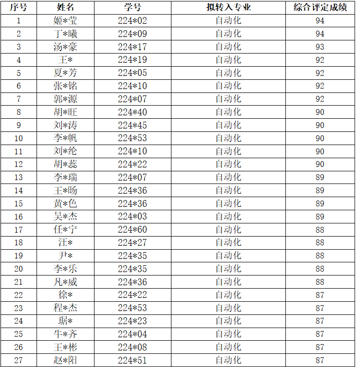 根据学校《关于77779193永利官网2024-2025学年学生第一次转专业工作的通知》要求,我院完成相关面试考核,现将最终考核结果公示如下: