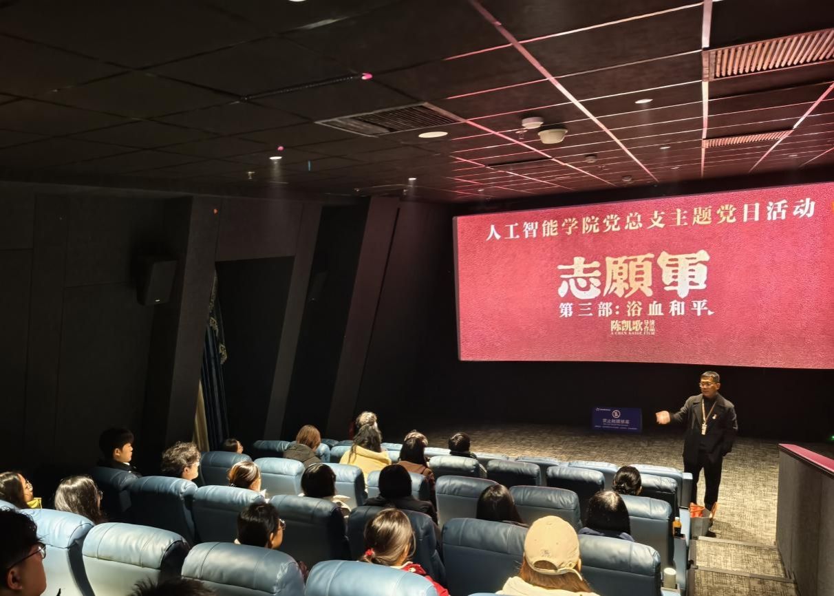 为深入推进党史学习教育常态化长效化,深刻缅怀革命先辈的丰功伟绩,传承和弘扬伟大的抗美援朝精神,进一步激发广大师生党员的爱国热情和奋斗激情,2025年11月7日下午,BEAT365英国官网党总支精心组织学院部分师生党员集体观看了重大历史题材影片《志愿军:浴血和平》。此次活动作为学院党总支本学期重要主题教育活动之一,旨在通过沉浸式的光影体验,引导师生党员重温峥嵘岁月,感悟初心使命,汲取奋进力量。学院党总支书记、学院副院长尹钧,学生党支部书记杨家腾、陈龙与近40名师生党员一同参加了观影活动。