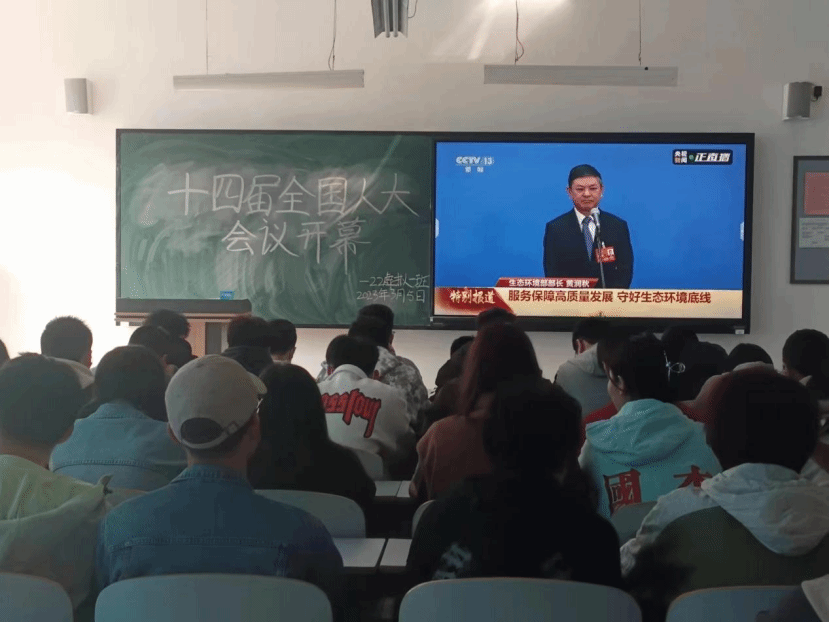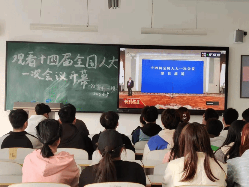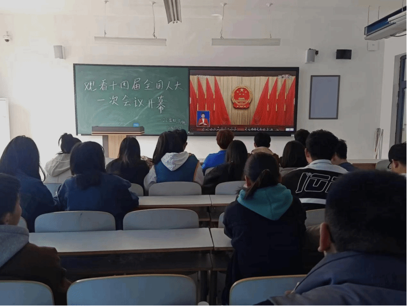 3月5日(星期日)上午9时,第十四届全国人民代表大会第一次会议在人民大会堂举行开幕会。十四届全国人大一次会议5日上午9时在人民大会堂开幕,听取国务院总理李克强关于政府工作的报告。下午,各代表团举行全体会议,审议政府工作报告。5日上午,出席全国政协十四届一次会议的全国政协委员列席十四届全国人大一次会议开幕会,听取政府工作报告。人工智能与大数据学院组织团学干部观看此次直播。