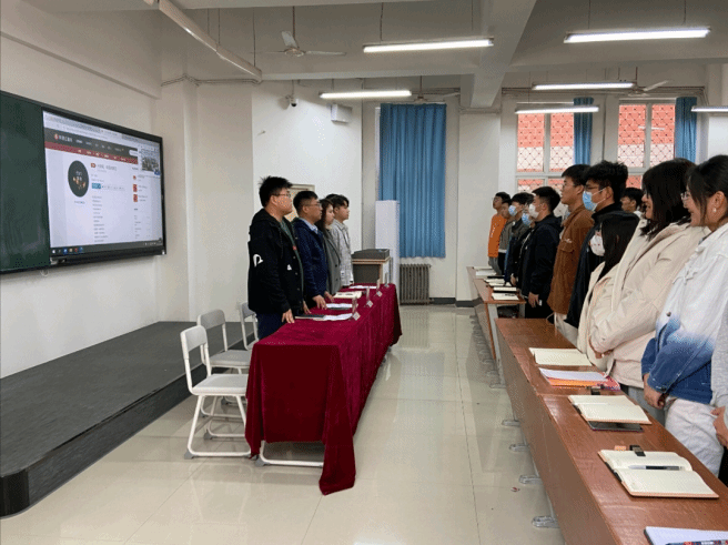 本次青马培训开班仪式由青马培训负责人刘宇轩主持,开班仪式在嘹亮的团歌声中拉开帷幕。首先,由尹钧院长宣布第三期“踔厉奋发,笃行不怠”青马培训班正式开班。接着由青马培训班学员代表于仰昊代表全体学员郑重承诺:“严格遵守青马培训班的规章制度,积极配合各项工作,认真学习,在学习中实践升华自己的人格,为成为一名真正的大学生骨干、成为合格的预备党员而努力奋斗,并为学校的建设和发展做出贡献!”
