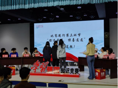第二轮为限时答题,各队伍踊跃答题,这不仅仅是反应力的比拼,更是思维敏捷力和知识储备的考验。每支队伍都不甘示弱,努力拉开分差,场上比分你追我赶,赢得了台下阵阵掌声。到第三环节,由前一队选手为下一队抽取答题文件,每个文件的题目数量与难度均不一致,并且有直接加分的惊喜礼包。随着主持人的一句开始答题,参赛选手们立刻开始“沉浸式”答题,不断将分数收入囊中,展现出团结协作的精神风貌。最后一个环节则为“一站到底”模式,每支队伍的选手们依次上台进行PK,一号队伍的参赛选手们凭借丰富的知识储备,站到了最后一轮,并将冠军收入囊中。