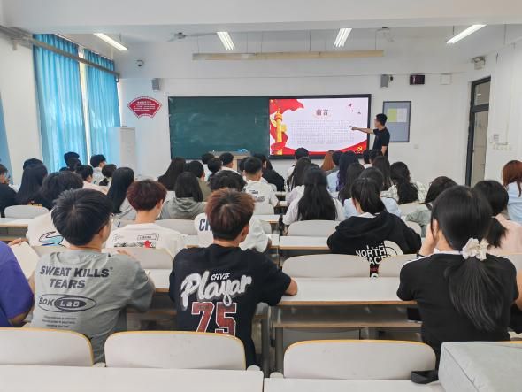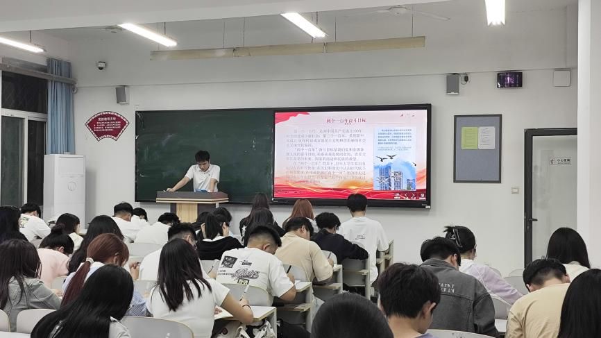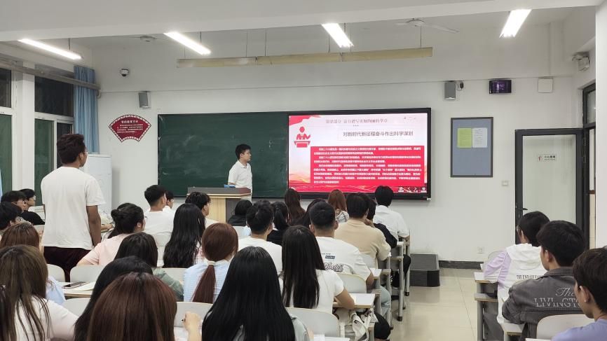 第二节培训则由段鹏飞带领学生们深入学习了党的二十大报告的主要内容,通过一系列深刻的思想启迪与交流研讨,学生们深刻了解当今的时政热点。并勉励学生们要深入学习习近平新时代中国特色社会主义思想,保持思想的纯洁性和先进性。