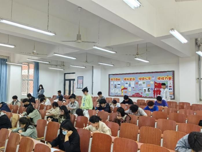 此次考试旨在提升学生们的思想政治素养和综合水平,巩固学生们对团课学习成果。考试前夕,入团积极分子们认真准备,以饱满的精神风貌以及严谨的态度来应对此次考试。考试时,监考人员从严把控考场秩序,严肃考风考纪,确保考试的公平公正;入团积极分子们从容不迫、专注答题,整个考场井然有序。