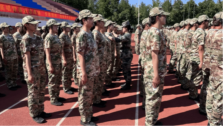 夏日燥热的风拂过肆意的原野,聒噪的蝉鸣伴着骄阳的热浪一波接一波愈发激烈,少年人挺拔的身影在没有一丝云彩的清澈蓝宝石的映衬下,满截着青春的朝气和新鲜的热血。一颗颗冉冉升起的新星身着迷彩板正端庄,像蓬勃生机的青松扎根在红白相间的塑胶跑道,怀揣着对未来生活的希冀,用坚定的意志凝成锐利的长剑劈开眼前的迷雾,无所畏惧,勇往直前。