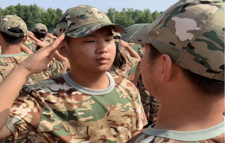 “一二三四,一二三四”,铿锵的口号在空旷的操场一遍遍回响,从额角慢慢汇聚的汗珠,少年人通红的脸颊,千百次定点的挥臂,遒劲有力的步伐,几天的军训生活让温室里的娇花逐渐脱去了稚气的模样,齐步、踏步、下蹲、敬礼一次次练习,一次次纠错,靠脚声趋向一致,少年人意气风发。