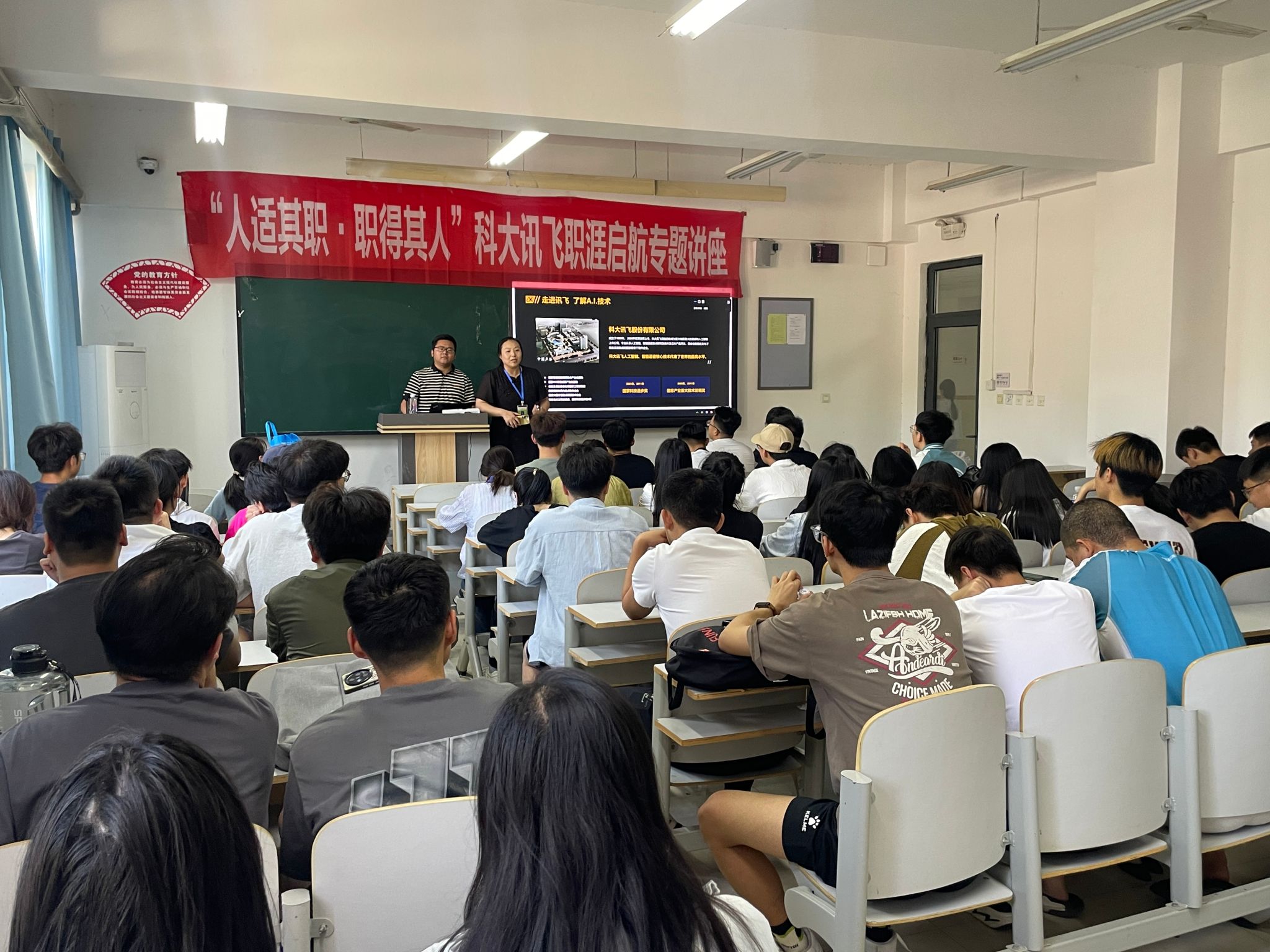 为进一步深化产教融合,完善人才培养协同机制,推动学生高质量就业,BEAT365官网于2024年5月31日在主教106开展了“人适其职,职得其人”职涯启航专题讲座,特邀两位科大讯飞讲师,面向学院21级人工智能专业、智能科学与技术专业全体学生进行职涯启航指导活动。