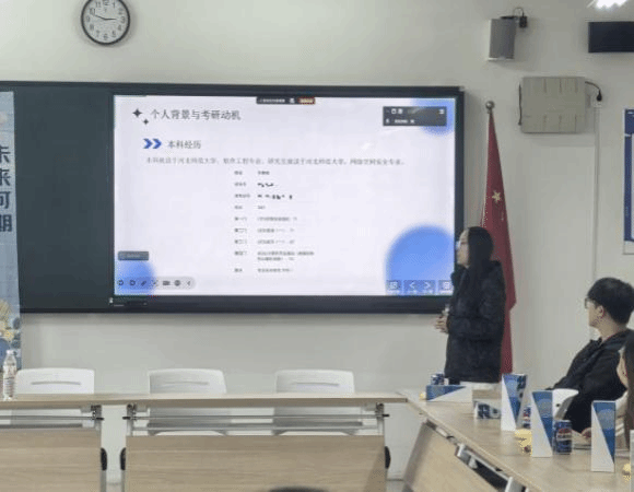 在分享环节,三位学长学姐结合自身考研考博的经验,从不同维度分享了实用建议。他们围绕择校、择专业的核心逻辑,建议学生们在做出抉择时,应综合考虑自身兴趣、实力以及职业发展规划;针对备考全流程,他们详细讲解了基础、强化、冲刺各阶段的时间分配与复习重点;同时,还深入探讨了英语备考技巧、专业课高效复习方法、科研论文撰写等内容,并着重强调了备考心态调节的重要性,提醒大家要避免过度焦虑,保持稳定的复习节奏。