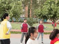 同时在操场上,学院的志愿者们开展“健美操”小课堂,本期健美操教学主题是“日不落”,伴随着悠扬的乐曲,小朋友们欢快的跳跃着,就像一颗颗星星闪耀在校园里,熠熠生辉。健美操的有趣教学为孩子们提供了锻炼身体的欢乐时光。志愿者们生动的教学不仅活跃了课堂气氛,更让孩子们在欢声笑语中收获良多。
