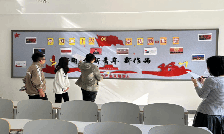 为扎实做好主题教育理论学习工作,根据《中共河北工程技术学院委员会关于深入开展学习贯彻习近平新时代中国特色社会主义思想主题教育的实施方案》 (党发[2023]6号)要求,制定人工智能与大数据学院主题教育理论学习方案。为学习贯彻中国共产党第二十次全国代表大会精神,学思践悟新时代大学生的担当使命,刻苦奋进锤炼过人本领,切实把党的二十大精神学习成果转化为个人学习进步的强大动力和生动实践,人工智能与大数据学院开展“学思践悟新思想,厉奋发向未来”主题板报设计评选活动。参与人员有人工智能与大数据学院党总支书记兼学管副院长尹钧,学管办公室主任杨家腾,学生思政办公室主任李亚鑫和学院在校党员。