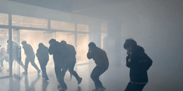 在本次活动开始前,学院提前制定了消防演练计划,包括演练时间、地点、参与人员、演练内容等,并确保所有参与学生都了解演练计划,同时检查了消防设施设备的完好情况,如灭火器、消火栓、疏散指示标志等。在启动消防演练并疏散的过程中,学生们听到火警信号后,立即按照预先规定的疏散路线和顺序进行火灾逃生,最终学生们成功逃出,消防演习圆满结束。