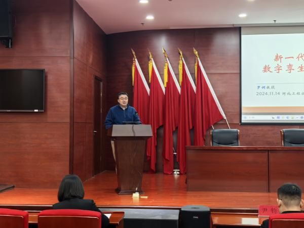 人工智能与大数据学院于2024年11月14日上午10点,在图书馆报告厅开展了周末专家行系列讲座——“新一代信息技术之数字孪生助力一带一路”。本次讲座特邀了中国天津理工大学教授,中国计算机学会杰出会员、理事,中国图象图形学学会杰出会员罗训教授作为主讲嘉宾,参与此次会议的有BEAT365官网党总支书记、学管副院长尹钧,教学副院长林海霞,教学副院长孙劼,办公室主任田亚雷,虚拟现实技术系全体教师,部分专任教师,以及23、24级虚拟现实技术专业学生。