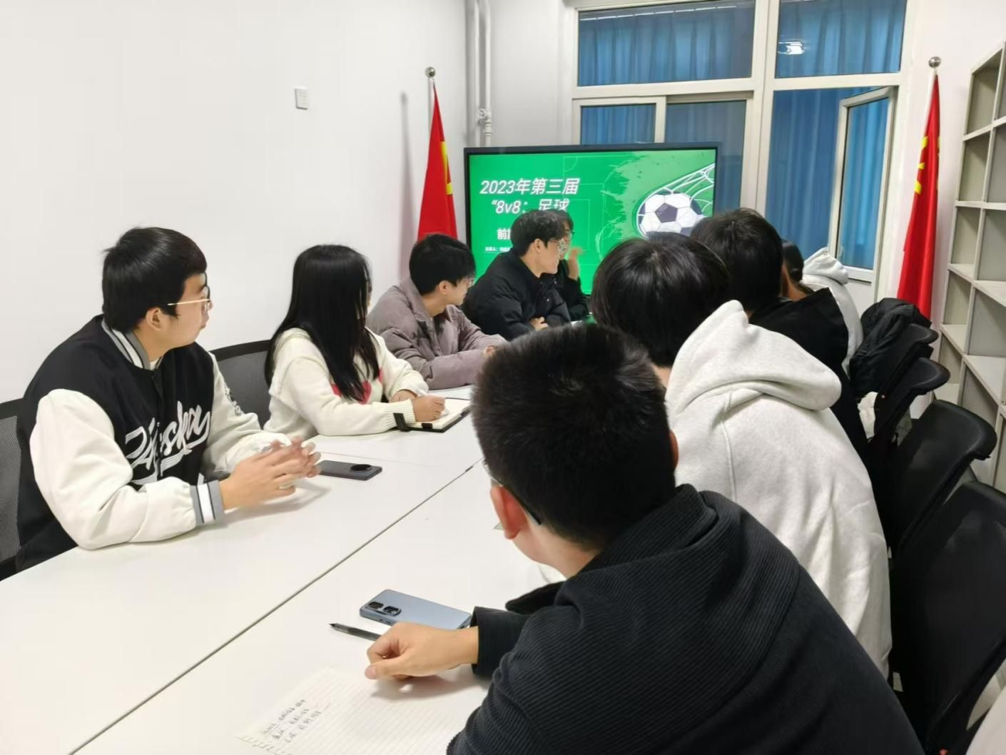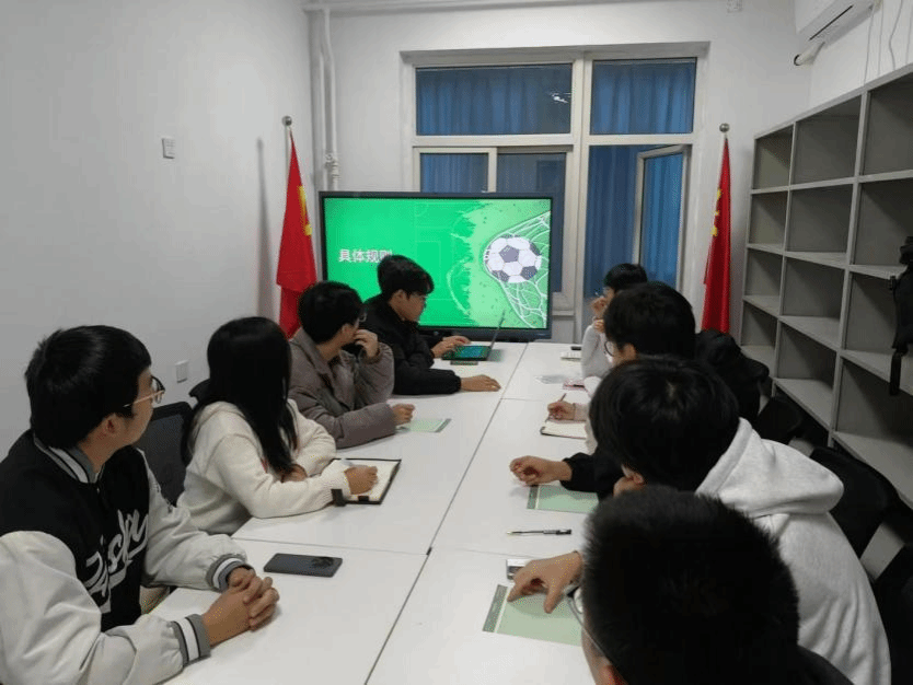 会议伊始,学生会负责人先向与会人员强调了此次足球赛将围绕公平竞赛、安全第一的原则,力求为参赛者提供一个安全、公正的比赛环境。