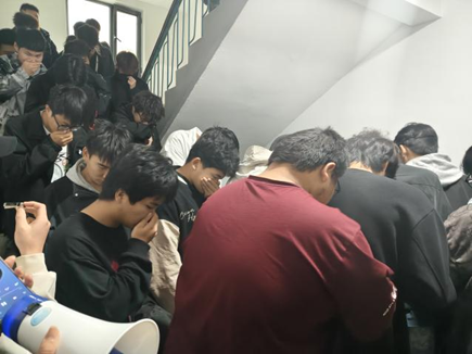 10月30日,尹钧院长用生动而富有号召力的话语,为活动拉开了序幕。深刻剖析宿舍消防安全的重要性与紧迫性,将宿舍火灾逃生注意事项拆解得通俗易懂。随着火灾信号响起,学生快速且有序地撤离宿舍。演练尾声,院长细致总结并详解消防栓使用方法,曾老师讲述消防知识,六名学生在院长与老师的指导下,上台实操灭火器灭火,“见火不慌、抬手能灭”的实战能力在实践中尽显。11月1日,尹院长结合高校宿舍火灾的真实案例,把消防安全知识讲得深入浅出。互动环节,学生踊跃提问,尹院长耐心且专业的解答。技能演练环节,学生们在模拟火灾环境中,听到哨声便以“弯腰捂口鼻、沿墙壁靠右行”的标准姿势,从不同楼层有条不紊地撤离至空旷区域。