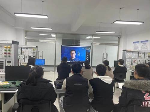 学生观看在线会议照片