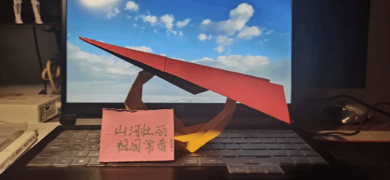 此次活动围绕中华人民共和国成立74周年开展,采用线上的模式去开展此次活动。学生们需在家里自己用红色的卡纸去折成纸风车,如不会折纸风车也可以折成纸飞机,然后把自己对祖国母亲的美好祝愿写在卡片上并挂在精心制作的红色纸风车和纸飞机上,将自己所写的卡片内容拍照发到群相册,转动的风车象征着我们对祖国的爱意永不停歇并传播给自己的身边人,放飞的纸飞机代表着我们昂扬的爱国热情一路飘扬播撒到远方,学生们对祖国的美好祝愿也将被送去祖国的大好河山。