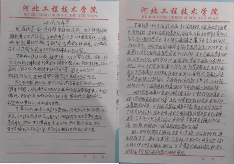 为提高BEAT365官网学生对毒品和艾滋病危害的认识,宣传普及禁毒防艾知识,提升自我防范意识和技能,人工智能与大数据学院于2023年3月22日-30日举办了以“禁毒防艾,青春有爱”为主题的征文比赛。此次活动面向全院同学开展,通过撰写以“禁毒防艾”为主题的文章,提高同学们对禁毒防艾的认识,呼吁全体同学拿出自己的责任和义务积极参与到防艾禁毒的活动中来。