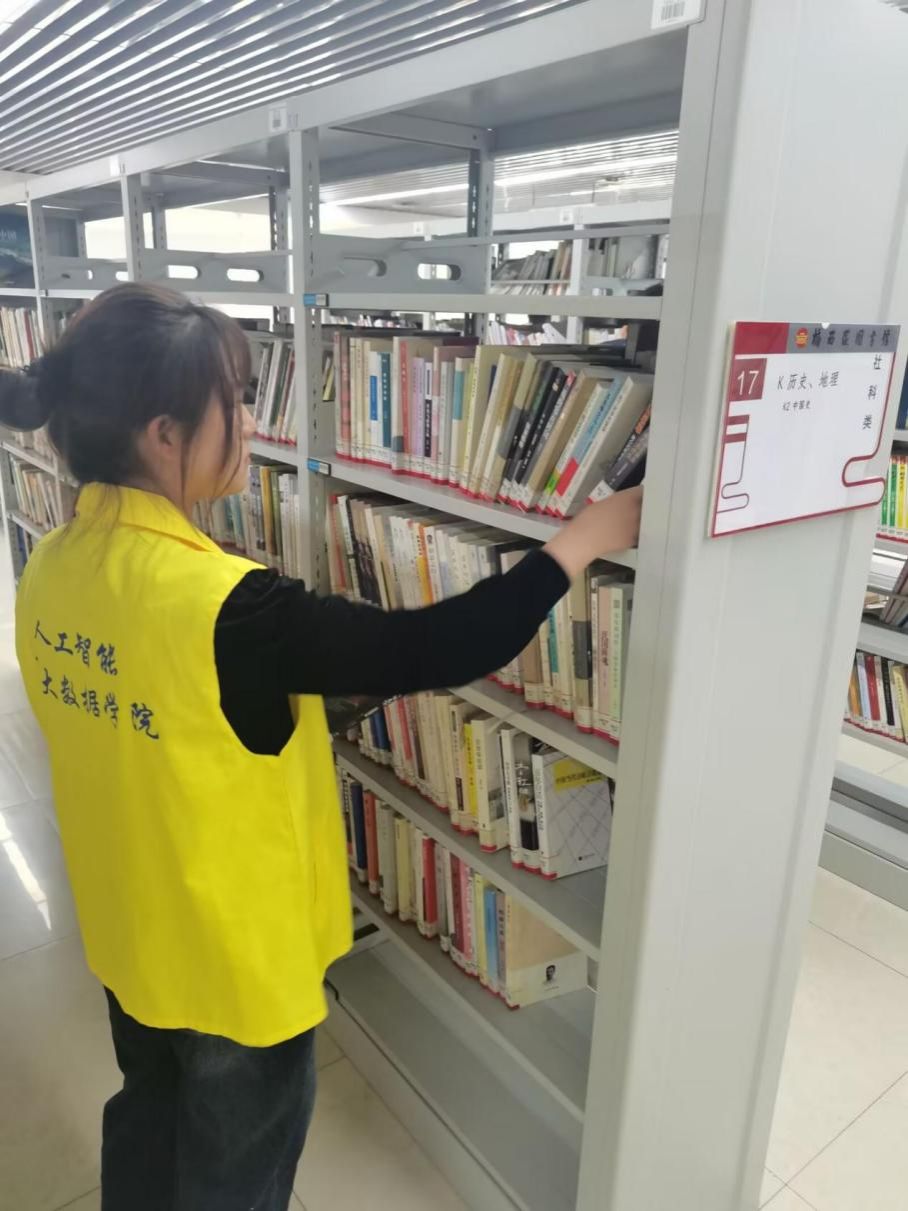 人工智能与大数据学院青年志愿者协会于2023年11月25-11月26日组织学生们前往桥西区图书馆协助图书馆工作人员进行书籍报刊整理、新书的注册、分类排序、整理等工作。