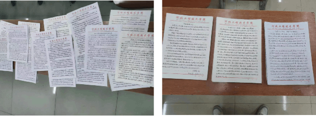 此次活动围绕"非遗文化千年传,古韵今风共舞蹈"主题展开,学生们自行向主办方报名参与征文活动,在河工纸上将自己心中的非物质文化遗产写下。活动自开展以来,受到了广大学生的积极响应,共收到了征文作品超过100篇,涵盖了传统手工艺、音乐、舞蹈、戏剧等多个非遗领域。学生们将自己对于保护非遗的决心通过作文所表达出来。
