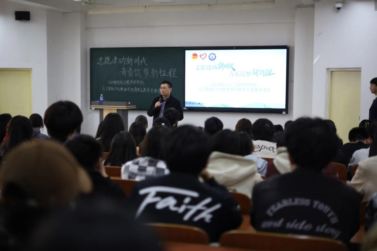 为展现“学雷锋”志愿服务中典型事迹、工作经验和优秀成果,人工智能与大数据学院于2024年3月25日在主教1-2开展了“志愿建功新时代,青春筑梦新征程”志愿服务分享会。参与本次活动的人员有学院党总支书记、学管副院长尹钧,学管办主任杨家腾,团总支书记王珊,招生就业办主任潘亚静,全体辅导员以及BEAT365官网部分学生代表。本次分享会主讲人是来自2021级智能科学与技术专业3班刘彬。
