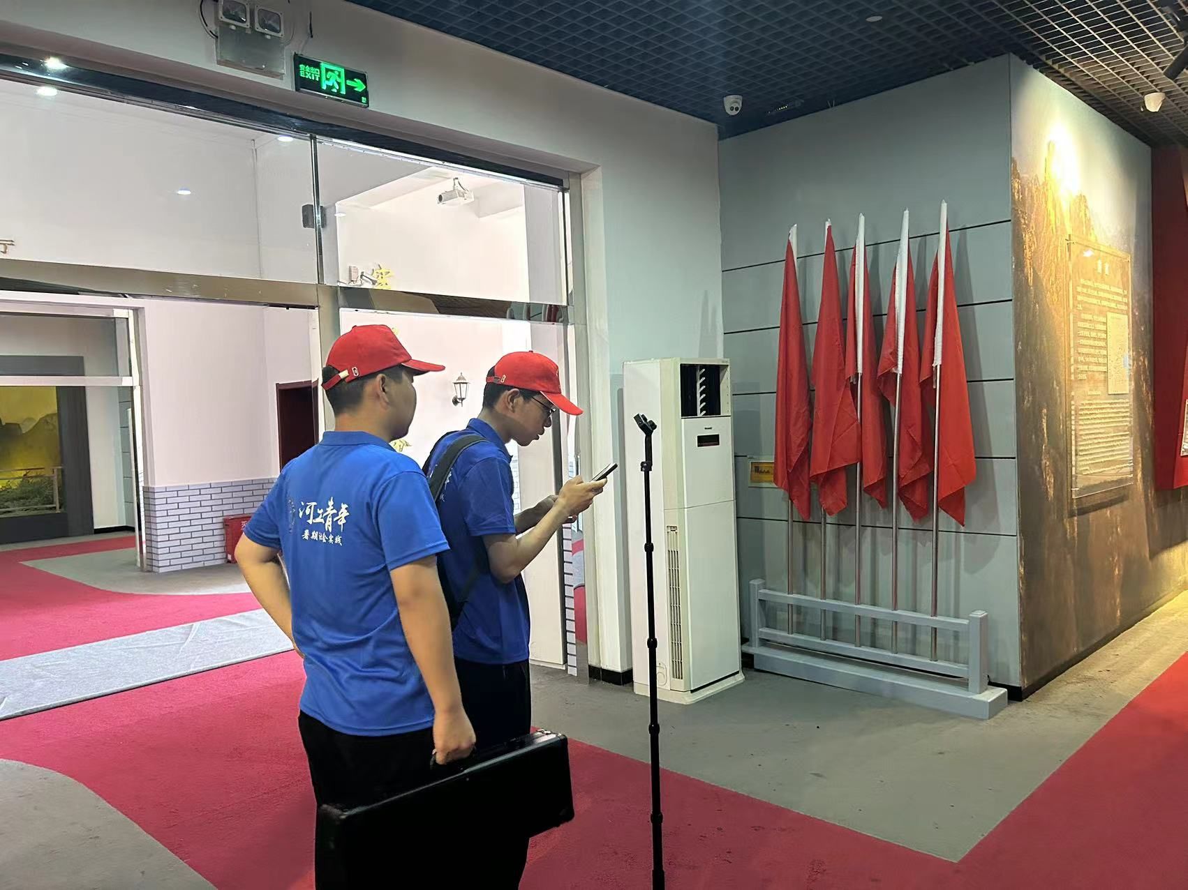 红韵智旅团队员使用VR全景相机进行取景