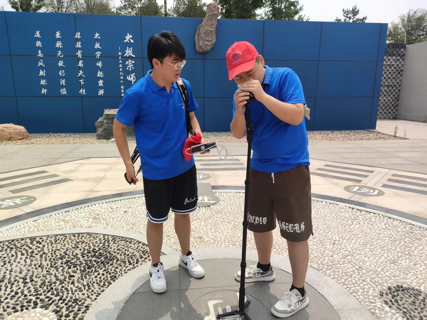 红韵智旅团队员使用VR全景相机进行取景