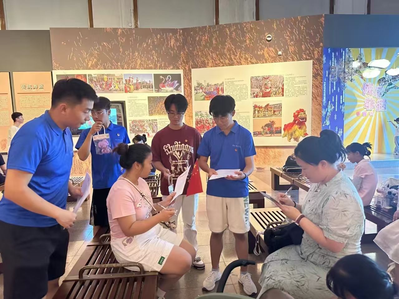 赤遗探索团在沧州博物馆内文创馆前和游客合照