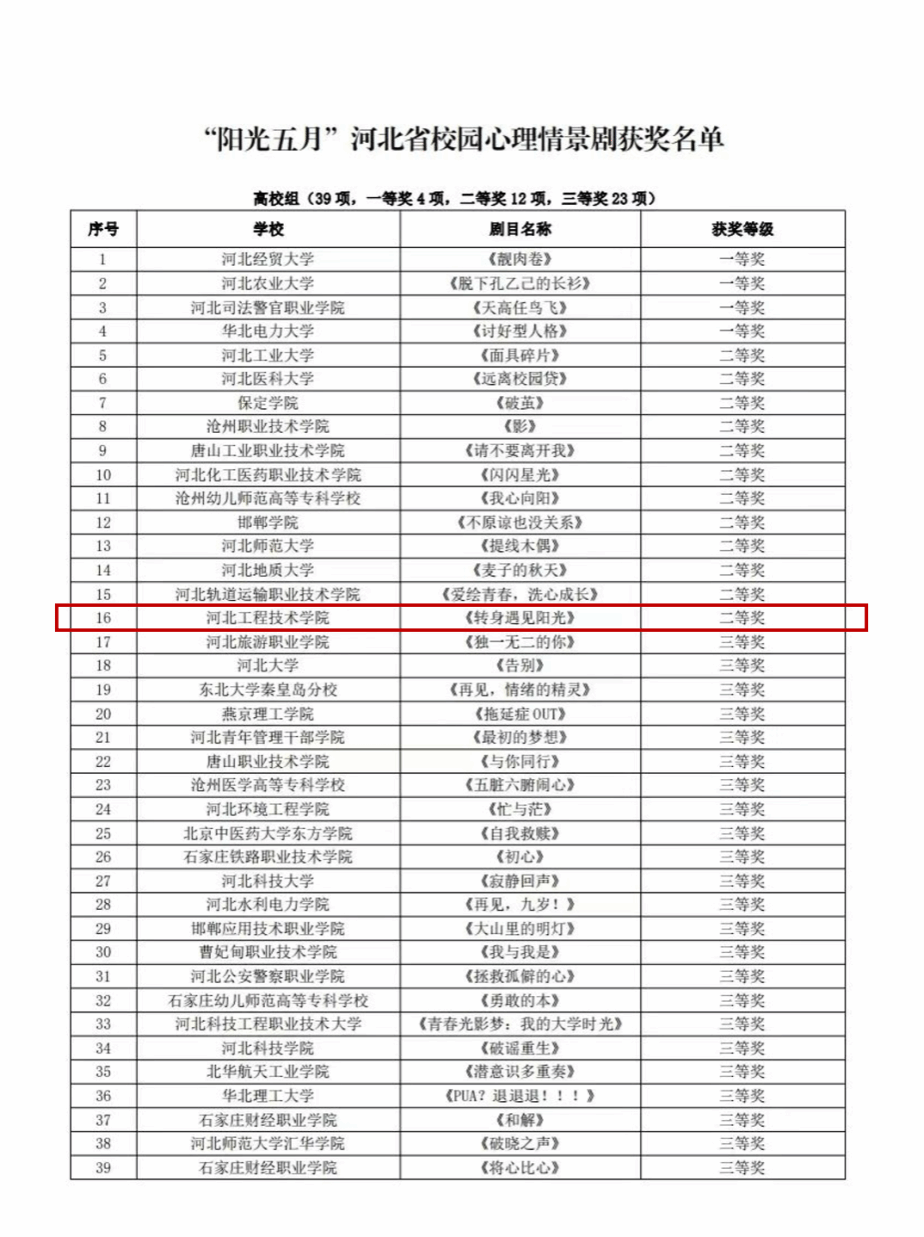 人工智能与大数据学院心理健康协会根据学校关于“5·25心理健康月”相关文件精神,由BEAT365官网精心打造的校园心理情景剧《转身遇见阳光》荣获省级二等奖。此次获奖不仅彰显了BEAT365官网在人才培养方面的卓越成果,更丰富了BEAT365官网心理健康教育实践的形式,营造了积极向上、和谐健康的心理健康氛围。