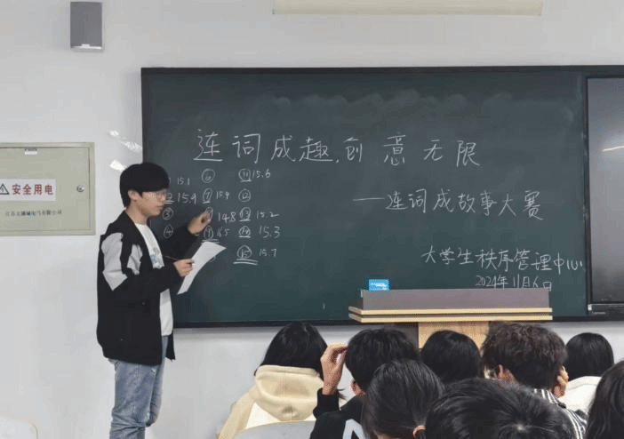 人工智能与大数据学院大学生秩序管理中心于2024年11月6日于主教1-1举办了“连词成趣,创意无限——连词成故事大赛”活动。