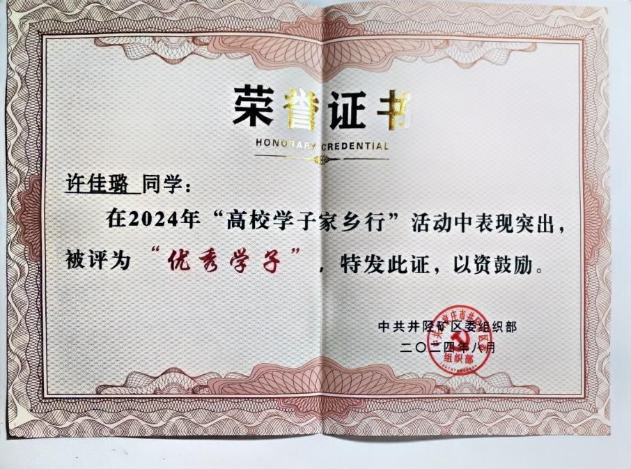 2023年“学习伟人事迹,传承伟人思想”演讲活动中荣获“三等奖”,“三好学生”称号。