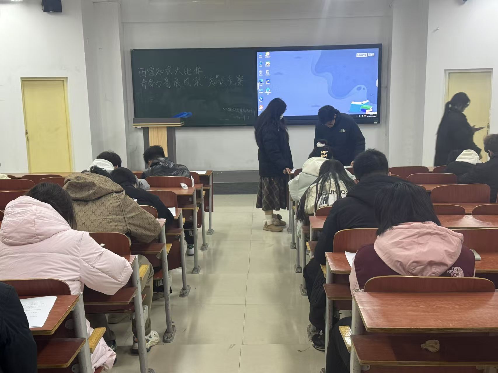 人工智能与大数据学院团务部于2024年12月12日19:00在主教1-2开展线下“团学知识竞赛”活动,此次活动由团总支学生副书记孙健明、张函毓主持,参与人员为初赛中的前42名优秀学生。