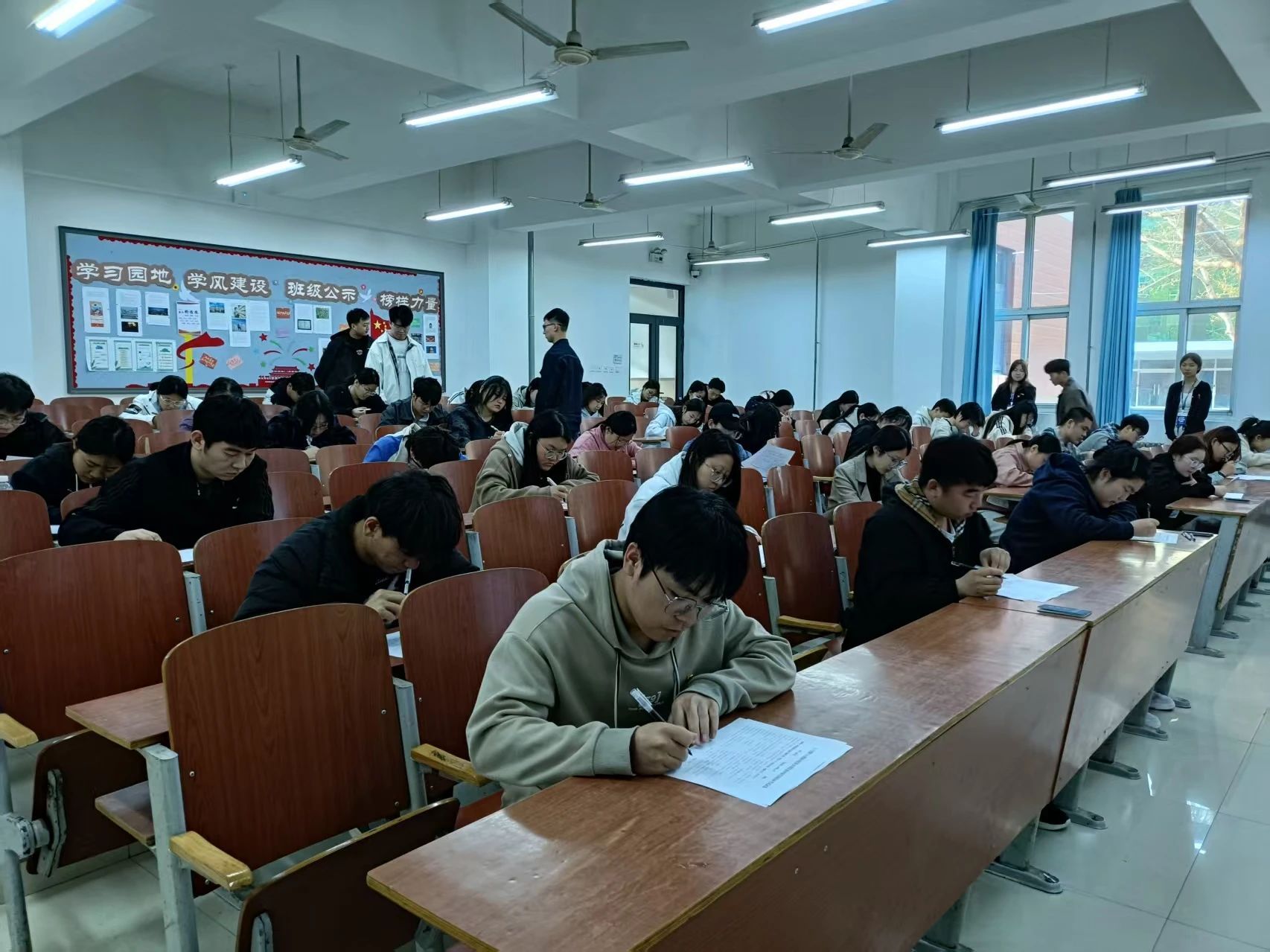 经过两天的集中培训和自主学习,BEAT365官网于2025年3月30日17:00在主教1-2开展了第35期学院拟推荐发展对象院团课结业考核。本次考核全面涵盖了培训课程的各个方面,不仅涉及了团章中的核心内容,还对学员们在培训期间所学习到的各项知识进行了综合性的检验。在监考人员的积极组织中,考试顺利进行,考场秩序井然,纪律严格,为考生们提供了一个宁静而专注的考试环境。学生们在考试过程中全神贯注地作答每一个问题,他们的专注态度和认真精神充分展现了他们对党组织的热忱追求以及对学习任务的高度重视。