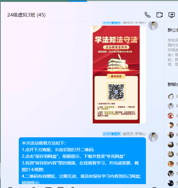 活动开启后,吸引了学院5000余名学生踊跃参与观看与答题,热情高涨。此次课程分两天进行,为学生留出充足的学习与吸收时间。首日,重点向青年学生阐述宪法的产生历程、基本概念及其效力和重要意义。讲解人员凭借专业且扎实的知识储备,将晦涩冗长的宪法知识巧妙融入生动鲜活、浅显易懂的实际事例之中,激发了学生们进一步探索宪法知识的兴趣。讲解结束后的答题环节,也有效帮助学生巩固当日所学,让学生在互动中加深对宪法知识的理解。次日课程是在前一天基础上的深入拓展,以循序渐进的方式让学生更深刻领略宪法的伟大,主要聚焦宪法对公民个人的影响与帮助。通过视频讲解,学生仿佛与专业法律人士面对面交流,对宪法知识有了全新且深刻的认识。观看结束后,学生们反响热烈,纷纷表示受益匪浅,法治观念在交流探讨中愈发深刻。