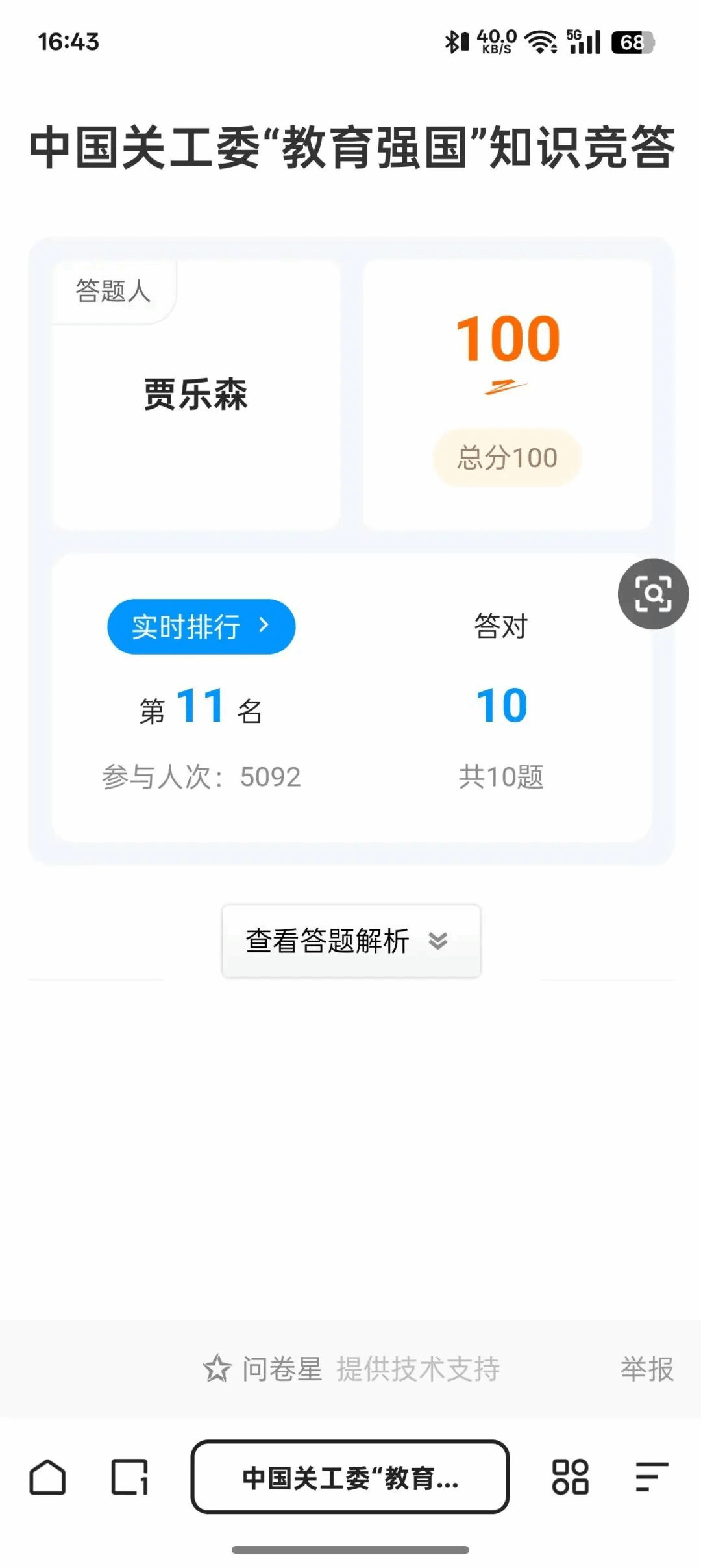 学院学生答题截图