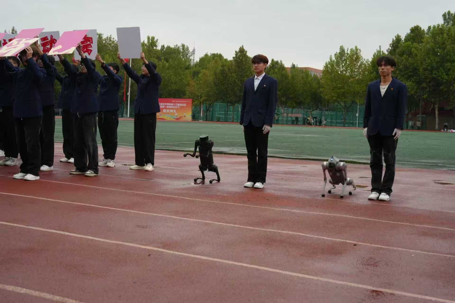 BEAT365英国官网的方阵以科技之名踏浪而来!方阵成员们步伐整齐,手持道具,随行进节奏拼出亮眼字样,将专业特色化作流动的视觉符号。空中,无人机飞旋空中放出条幅,与地面口号交相辉映。萌态与力量兼具的机器狗紧随其中,与看台观众打招呼,尽显学子的创新活力与锐不可当的精神风貌。