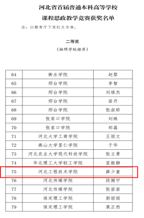 薛少童老师参加河北省课程思政大赛,荣获省级二等奖;