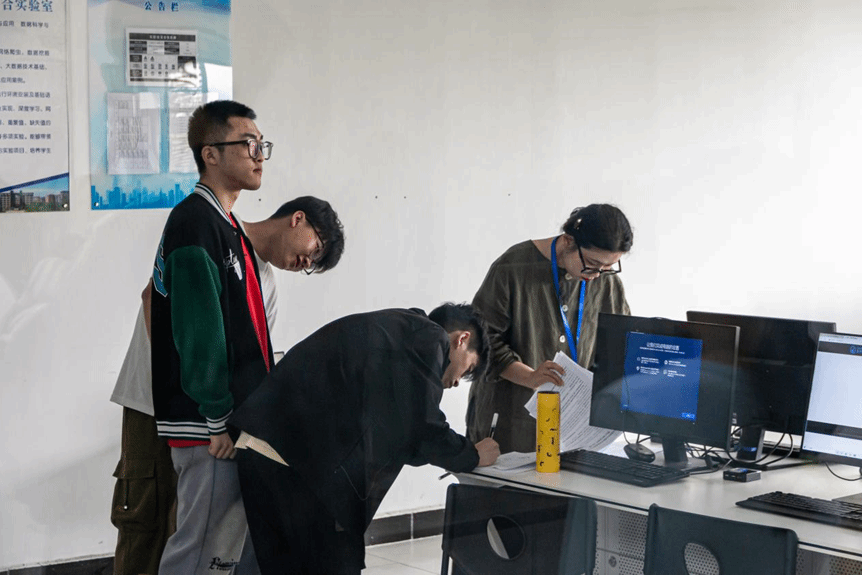 大赛举办当日,校长助理姜新佩、教务处副处长白向伟、人工智能与大数据学院教学副院长林海霞、学管副院长尹钧都到现场进行巡查,保障大赛顺利进行。
